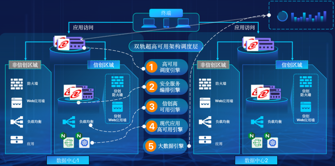 BB贝博艾弗森在企业面临自主创新IT基础重构过程中,推出的全新架构双轨超高可用架构(简称DTMAA),在双活数据中心的分区调度基础上,添加每个数据中心内信创域和非信创域的分域调度,来实现分区分域协同的多活双轨超高可用。